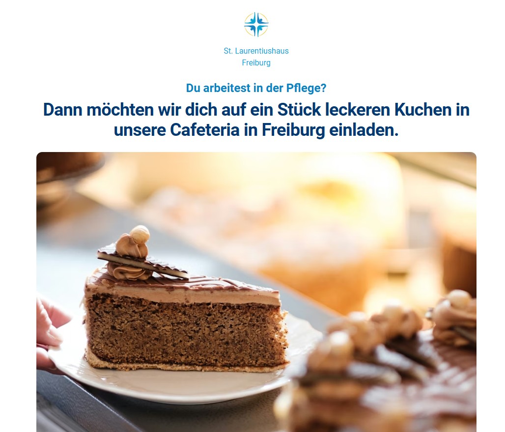 Ergänzend richteten wir „Mobile Funnels“ für 3-Minuten-Bewerbungen ohne Anschreiben ein, nutzten parallel insbesondere für geringer qualifizierte Stellen ein spezielles Profil auf kleinanzeigen.de (das eine höhere Sichtbarkeit als üblich hat) und setzten Maßnahmen ein, um auch latent Wechselwillige zu erreichen – etwa Plakatwerbung am Bahnhof. Auf Instagram und Facebook verzichtete der Kunde bewusst. Preiswerte Printanzeigen im Mitteilungsblatt des Stadtteils, Flyerauslegung mit QR-Codes bei Multiplikatoren sowie zahlreiche Veröffentlichungen bei Google for Jobs und ein offizielles Profil bei Kununu erhöhten zusätzlich die Sichtbarkeit. Eine Einladung zum Kuchenessen (mit super leckerem Kuchen vom Konditor vor Ort, gewünschte Sorte können die Interessenten im mobilen Funnel angeben) statt klassischer Bewerbungsgespräche rundeten das Konzept ab.