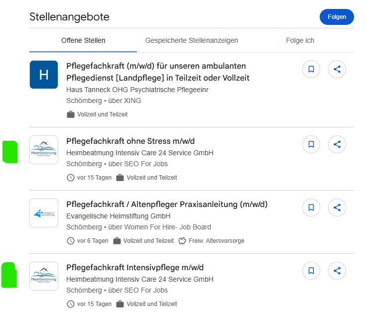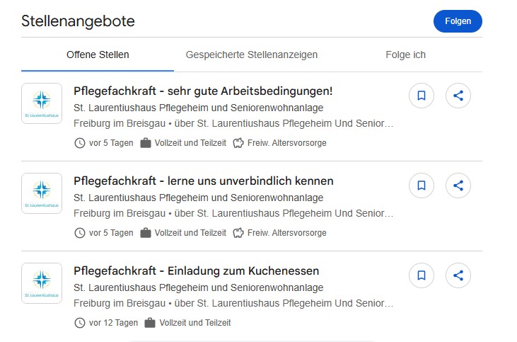 Sehr gute Präsenz in Google for Jobs: