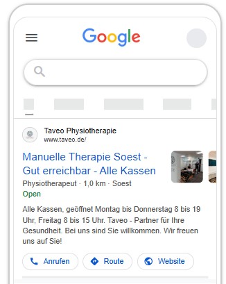 Anfang 2025 wandte sich ein junger Physiotherapeut an mich, der in etwa einem Jahr eine eigene Praxis eröffnen wollte. Benötigt wurden eine Webseite, gute Google-Auffindbarkeit, Online-Werbung und perspektivisch Unterstützung bei der Personalgewinnung.